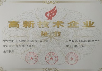 山東驟風信息技術有限公司,于2022年12月通過了高新技術企業(yè)認證!
